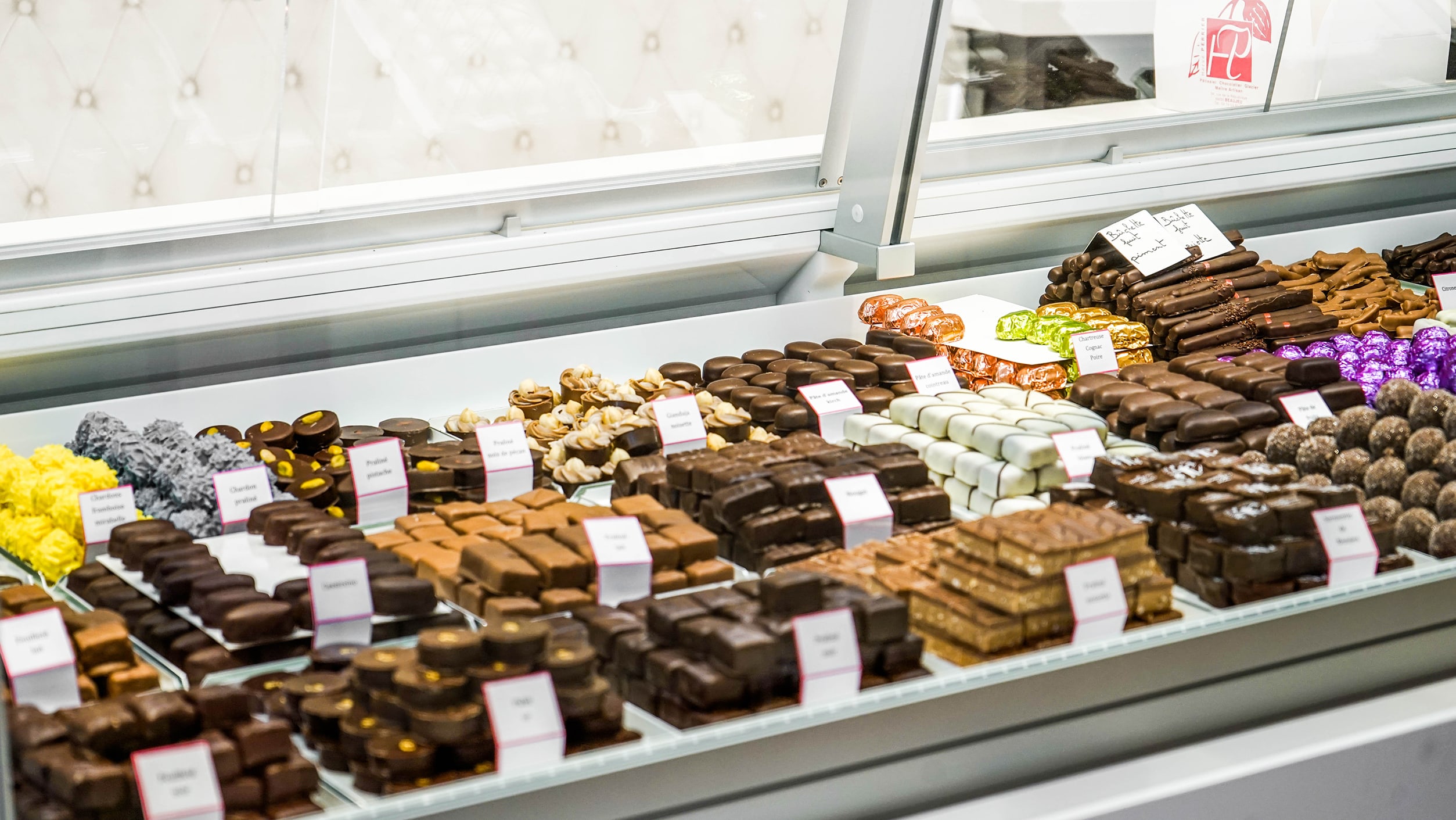 Nos chocolats sont exposés en vitrine que l'on puisse vous confectionnez vos propres assortiments.