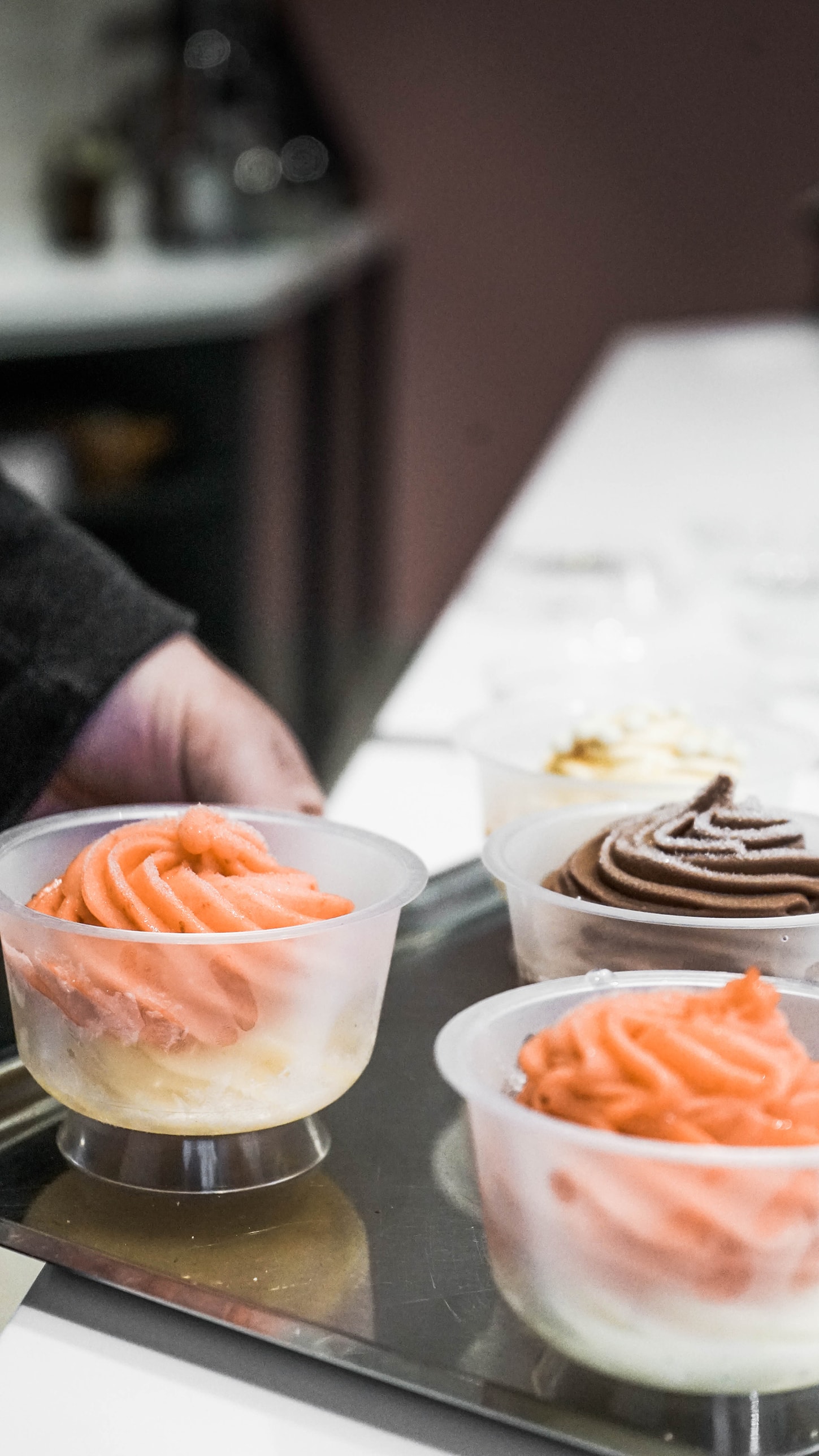 Vous y trouverez un large choix de parfums en glaces ou en sorbets que vous pourrez déguster de divers manières. En cornet, en coupelle, en bac (de plusieurs capacité, allant de 500mL à 750mL), en vacherin(assortiment de sorbet recouvert de meringue et de crème chantilly), en panier glacé ou en omelette norvégienne.
